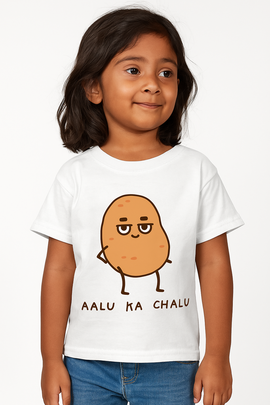 Bring some playful charm to your little one’s wardrobe with the Aalu Ka Chalu Kids’ Graphic T-Shirt. Designed with a quirky and confident potato cartoon, this tee is perfect for kids who love to stand out with humor and style. Made from 100% soft, breathable cotton, it ensures maximum comfort for everyday wear, whether at home, school, or outings. The high-quality printing is vibrant and durable, staying fresh even after multiple washes. Its lightweight fabric and classic fit make it ideal for active kids, while the fun Hindi phrase adds a touch of desi flavor. Perfect as a gift or for casual wear, this t-shirt is a delightful blend of comfort, cuteness, and cultural fun.